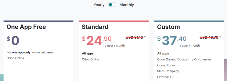 Experience the thrill of having any one application in the Odoo ERP completely free of cost, with unlimited users. This incredible offer is available for multiple companies, allowing you to choose any app from the Odoo Applications lineup. Moreover, if you select an application that relies on other applications, you will receive the associated module at no extra charge. It’s worth noting that you can upgrade from the One App Free plan to the Standard or Custom plan whenever you’re ready.